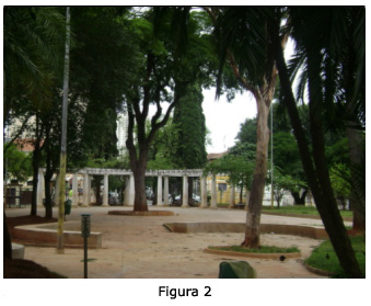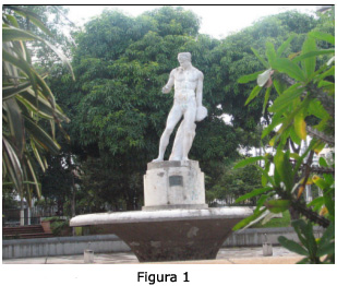 Figura 1 – O “Discóbolo” de Ottone Zorlini, escultor. Obra em pedra. No Centro da fonte da Praça General Polidoro. Fig. 2 – Praça Nossa Sra. da Conceição (Começo da R. Pires da Mota – esquina da FMV-USP.